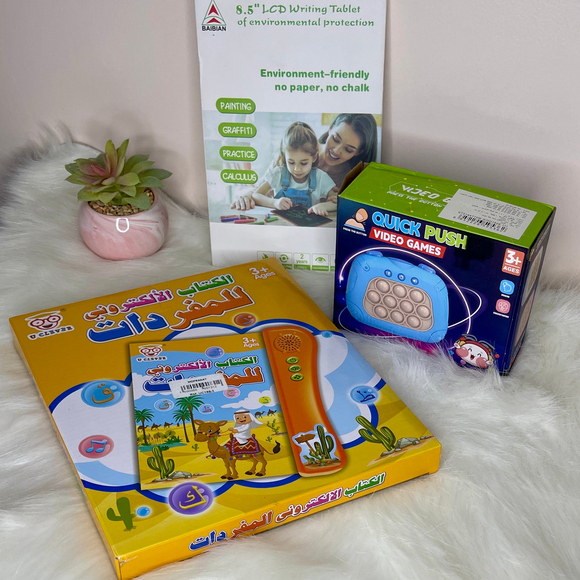 اكتشفي معنا كيف يمكن لأطفالك أن يستمتعوا بتعلم ممتع وآمن! نقدم لك 3 منتجات تعليمية مبتكرة تجمع بين المرح والتعلم بطرق لا تُنسى.كل هذا بسعر ممتاز